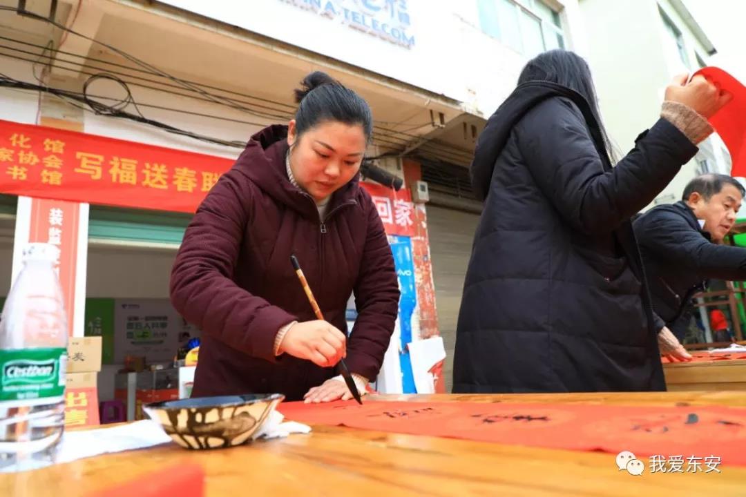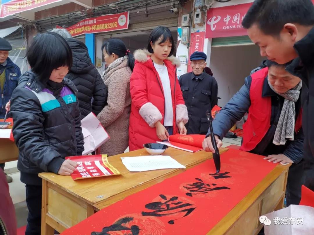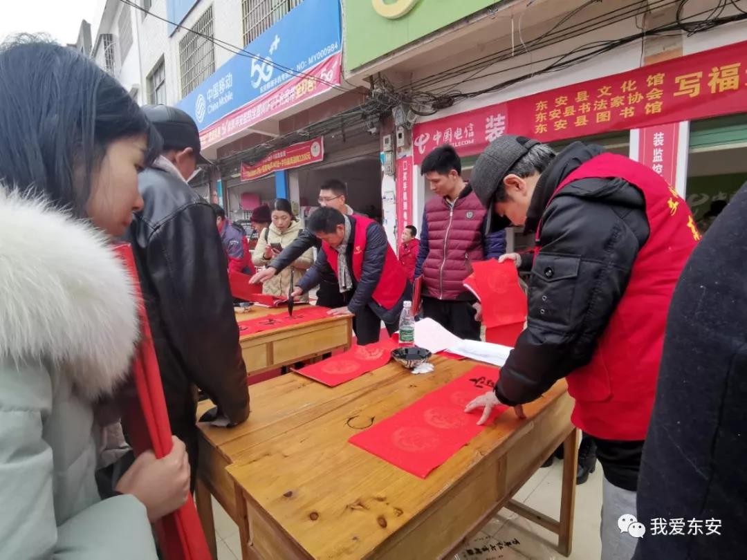 近年来每到年尾岁末,东安县就组织县书法家协会会员及文化志愿者到全县各乡镇免费送春联,为广大基层群众送去新春的温暖及祝福,书写了东安县公共文化服务的和谐新篇章。