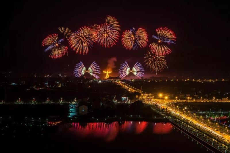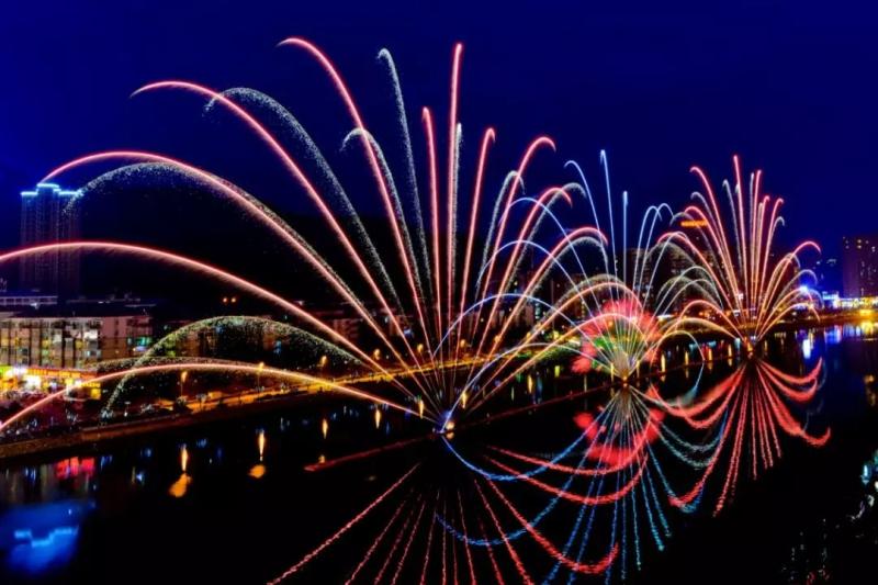 浏阳河畔绽放的烟花