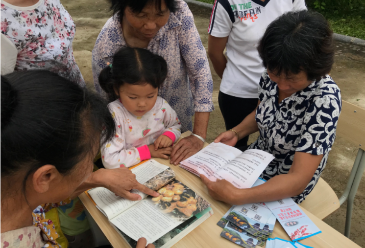 汽车的鸣笛声引起了洞美村部分村民的注意,当我们将车辆缓缓停靠在村子显眼处时,村民们纷纷聚集过来。工作人员随即说明来意,并引导其走进流动服务车内看书,为他们发放《公共文化服务保障法》、《公共图书馆法》、《公共文化服务体系示范区创建宣传手册》等宣传手册,让村民们了解自身合法文化权益。