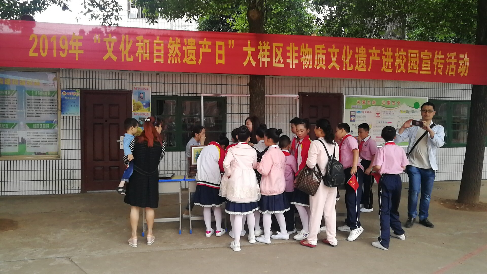 为进一步提高人民群众非物质文化遗产保护意识、传承、弘扬中华优秀传统文化,营造非遗保护良好社会氛围,5月31日“2019年文化自然遗产日”大祥区非物质文化遗产进校园宣传活动在城南小学举行。
