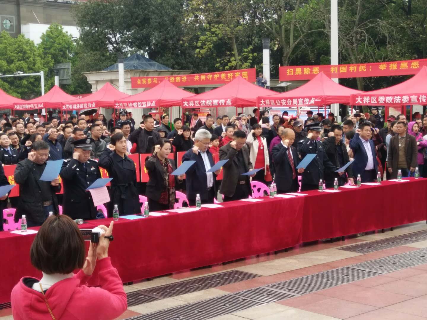 | 大祥区在城南公园举办政法综治、国安、禁毒、反恐、反邪教、铁路护路大型集中宣传活动暨扫黑除恶专项斗争誓师大会 | 大祥区文化馆官网 | 2018年4月16日 | http://info.dxzc.gov.cn/Item/71185.aspx |