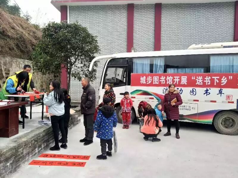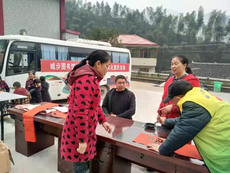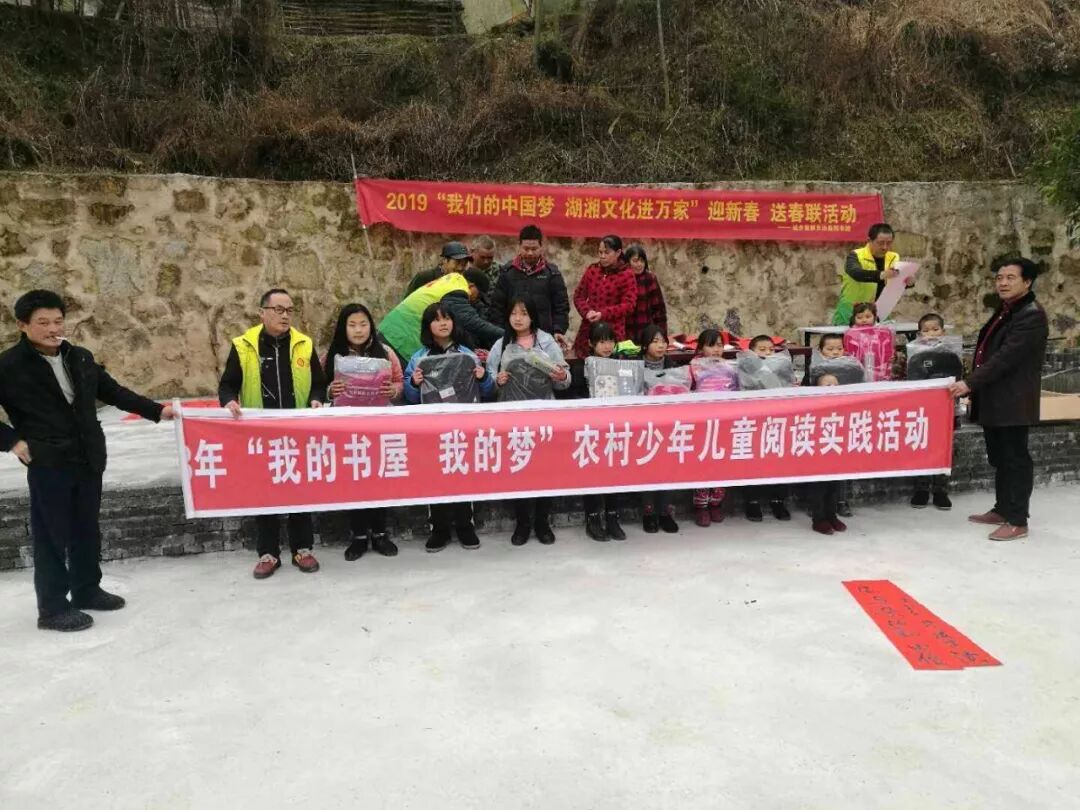 2019年1月28日,临近春节,不畏严寒,“我们的中国梦·湖湘文化进万家”文化志愿者,用图书流动车载着满满的温暖开进了威溪乡长佃村,开展了“迎新春·送春联·送祝福”文化下乡活动。