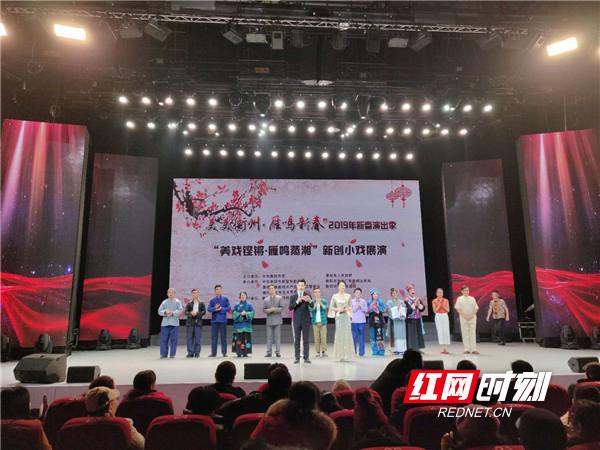 当天晚上举行的“美戏铿锵·雁鸣蒸湘”新创小戏展演,大部分是衡阳市文艺工作者根据现实题材新创的戏曲剧目。其中,现代衡州花鼓小戏《真情花开》、小歌剧《肖石月》入选第六届湖南艺术节新创现实题材小戏展演;花鼓小戏《摔碗》入选全省基层文艺院团展演;花鼓戏《说媒》参加了“雅韵三湘·传统戏曲艺术”专场展演。《真情花开》还获得了第六届湖南艺术节田汉小剧目奖第一名的佳绩,并进京展演。
