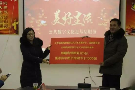活动中,文化和旅游部全国公共文化发展中心、国家图书馆向辰溪县和凤凰县各赠送了资源服务宝5台和国家数字读书卡1000张,用于开展戏曲欣赏、广场舞教学、农技培训等服务活动,充分丰富基层群众文化生活。