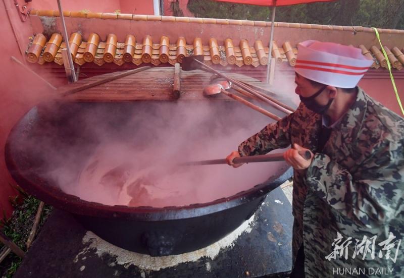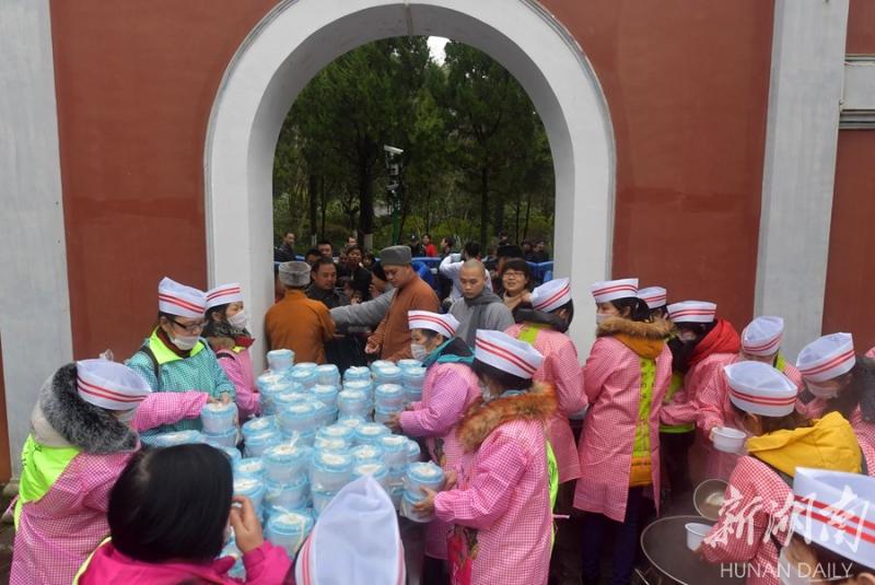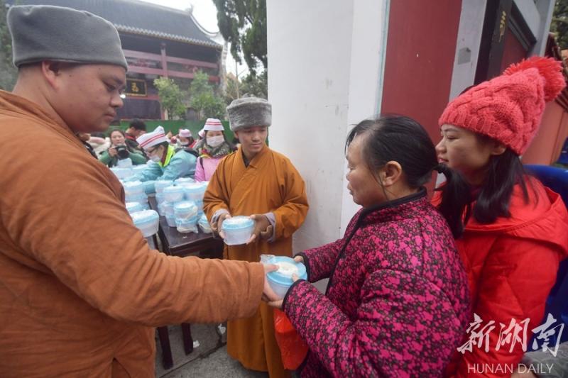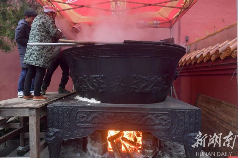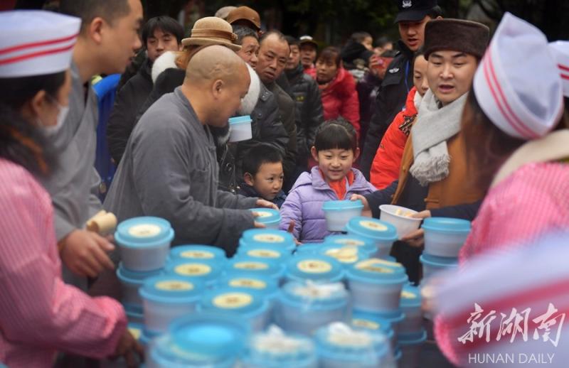 1月13日上午,市民品着热腾腾的腊八粥喜逛庙会。当天是农历十二月初八,是我国的传统节日腊八节,“逛千年庙会、品温暖腊八”2019年南岳庙会启动仪式暨腊八节慈善活动在南岳大庙火热举行。活动现场熬制了1万份“福寿”腊八粥免费赠与游客和市民,并捐赠50万给150个贫困家庭,开启新一年的幸福年味,吸引了众多游客和市民前来参与。湖南日报·华声在线记者郭立亮 通讯员文兰 摄影报道