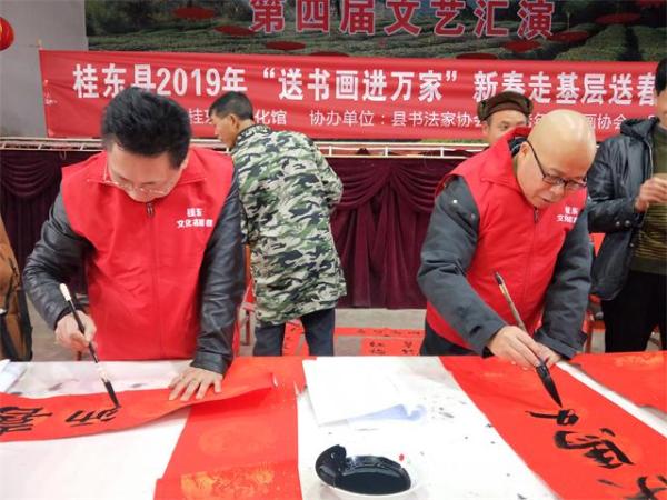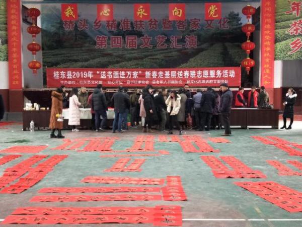 1月21日,由桂东县文化馆主办、桂东县书法家协会、桂东县老年人书画协会、桂东县文化志愿者群文服务队联合举办 “我们的中国梦 湖湘文化进万家”系列文化志愿服务活动之“送书画进万家”新春走基层送春联活动在桥头乡拉开帷幕。
