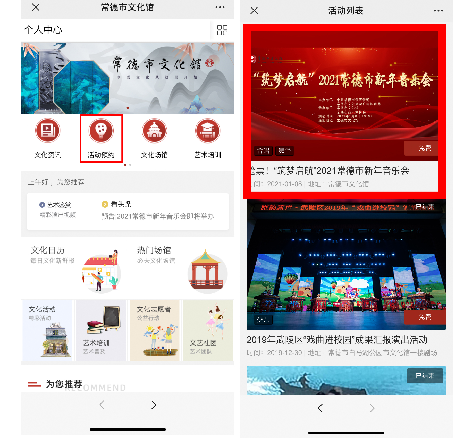 2.请携带身份证,凭个人中心抢票的订单号,于1月8日(9:00-17:00)前往常德市文化馆大厅服务台兑换入场券。