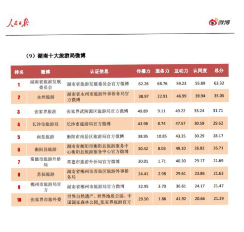 在旅游业的发展过程中,新媒体以其巨大的优势迅速崛起,在现代社会中表现出越来越大的影响力。此次峰会总结了2018年湖南地区旅游新媒体的发展状况以及取得的成果,对优秀的新媒体旅游单位进行了表彰,其中@湖南省旅游发展委员会微博获得了“2018年十大旅游新媒体”奖项。根据@人民日报 联合微博发布的《2018年度人民日报·政务指数微博影响力报告》中,@湖南省旅游发展委员会微博以绝对的影响力夺得湖南十大旅游局微博榜首。