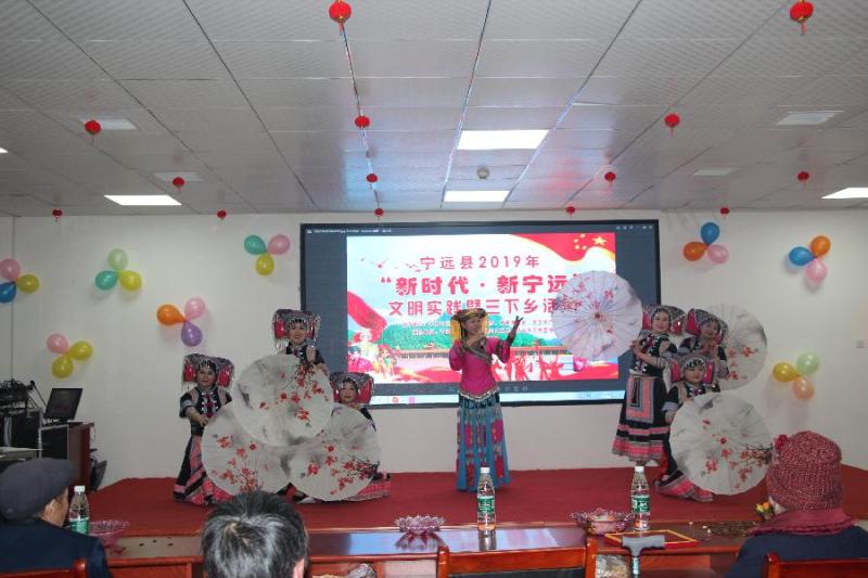 湖南公共文旅云网讯:(通讯员:唐四万)春节期间文化馆文艺活动精彩纷呈,“新时代-新宁远”为主题的文明实践暨三下乡活动紧锣密鼓的进行中,下乡演出节目包括歌舞、三句半、快板、双簧、器乐表演等,丰富多彩的节目让老百姓品尝了文化大餐。