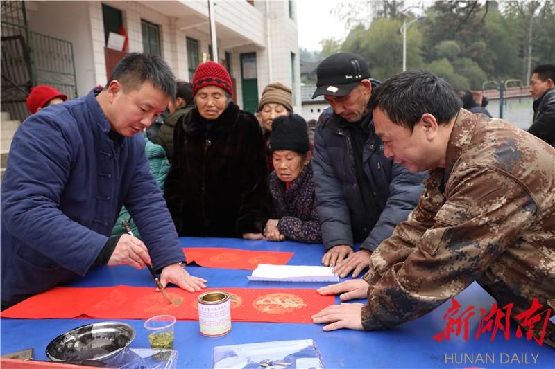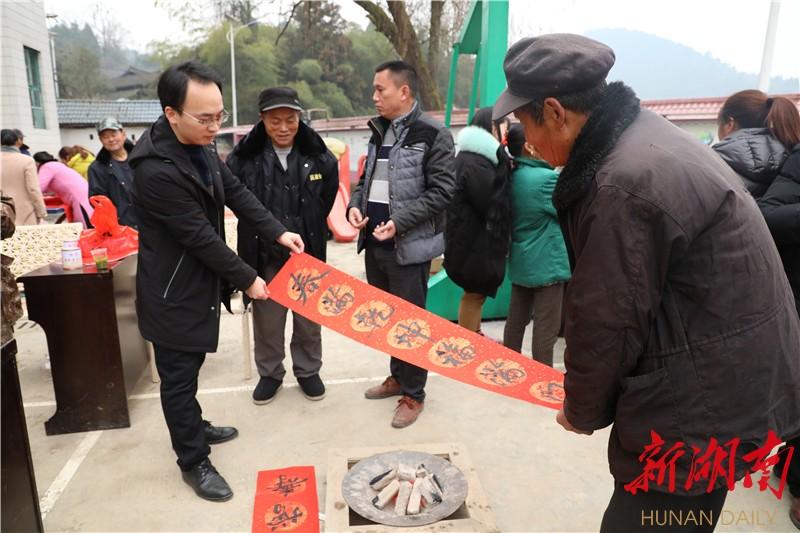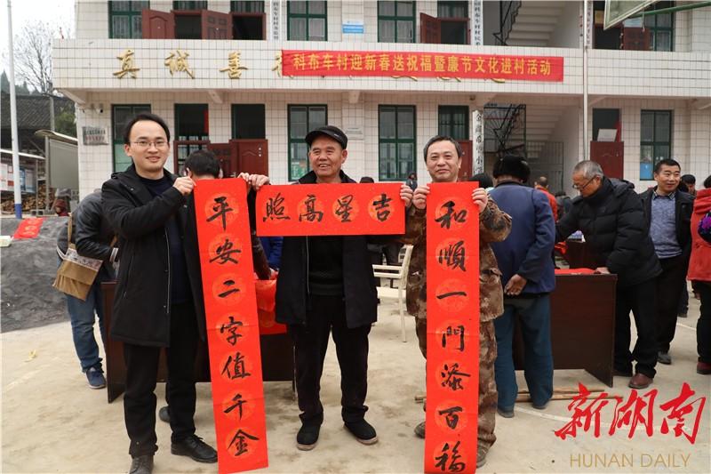 1月27日,湘西土家族苗族自治州古丈县纪委监委驻村工作队,在红石林镇科布车村开展迎新春送祝福暨廉节文化进村入户活动,156名群众参加活动,活动共送出428副新春对联。