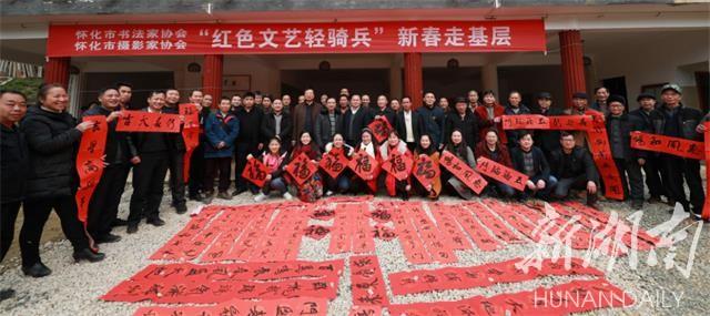 1月27日,怀化市书法家协会和摄影家协会组成的“红色文艺轻骑队”来到通道转兵地县溪镇红军长征文化园杜鹃草堂,开展义务写春联送祝福、为村民照全家福等文艺惠民活动。同时,还进行了杀年猪、打糍粑等民俗活动,增添了这里的年味和乡愁。