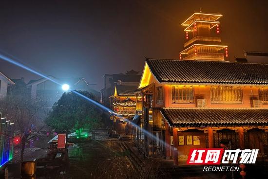 这是1月29日在湖南张家界市武陵源区溪布老街景区拍摄的夜色