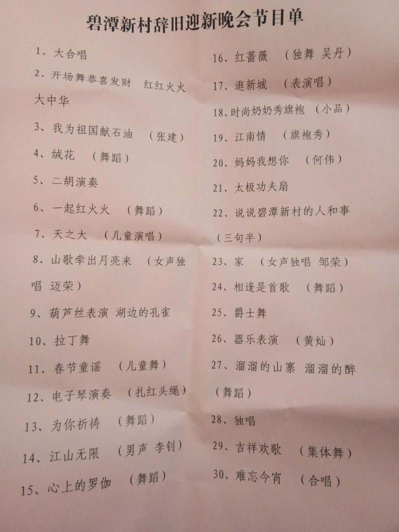 湖南公共文旅云网讯(通讯员:吴国章)2019年1月22日,为了响应中宣部号召。平江县瓮江镇碧潭村举办“我们的中国梦 湖湘文化进万家”迎新年文艺联谊活动。联谊活动在《红红火火大中华》舞蹈中拉开了帷幕。葫芦丝表演《湖边的孔雀》、二胡演奏、美妙而动听,动听的歌声有《我为祖国献石油》、《江山无限》、《妈妈我想你》等,掌声一次又一次的响起,响应了乡村群文活动提昌的“以文载道、以文育人、以文寓美、以文扬企、以文点睛”,在群众中带来了非同凡响的效果。