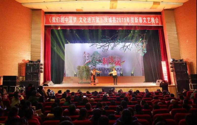 湖南公共文旅云网讯:2月14日,以“我们的中国梦 文化进万家”为主题的2019汝城县贺新春文艺晚会在影剧院精彩上演。晚会由县委、县政府主办,县委宣传部、县文体广新局承办,县领导何青松、黄光华、何海等领导和我县近千名群众一起观看演出。