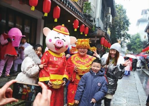 ▲2月17日,长沙市都正街元宵庙会举行,汉服走秀、踩高跷、财神送福等活动让人们零距离感受了民间传统文化。记者徐行摄