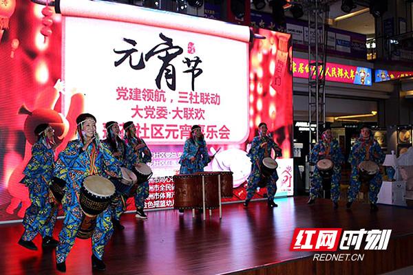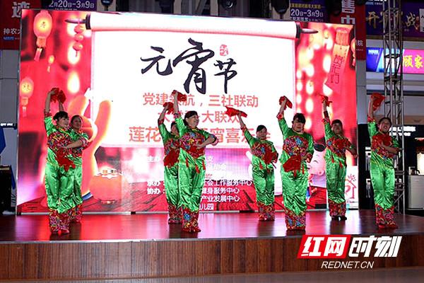 红网时刻株洲2月21日讯(通讯员 陈红梅 肖乐)株洲市全民健身中心充满热情的舞蹈、金色摇篮幼儿园老师优雅的歌声、活力四射的舞蹈,居民的广场舞表演……2月18日,莲花社区元宵喜乐会在红星美凯龙一楼举行,秉承大党委·大联欢的宗旨,莲花社区联合辖区单位和居民,一起欢闹元宵。