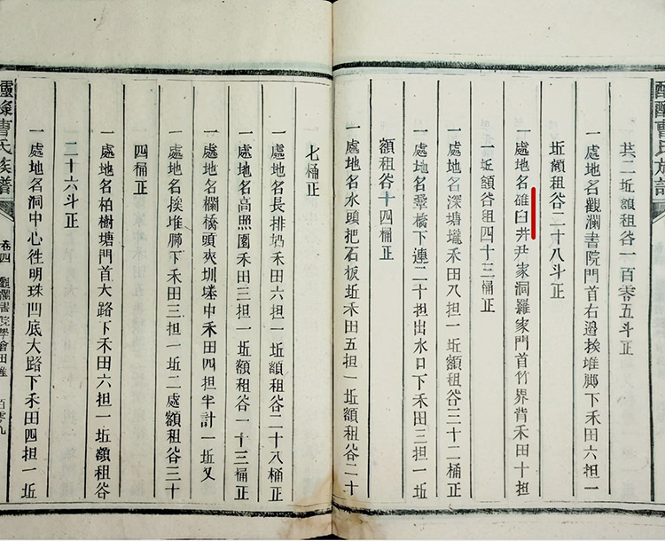 《醽醁曹氏族谱》载:“一处地名碓臼井尹家洞罗家门首竹界背禾田十担一坵,额谷租四十三桶正。”