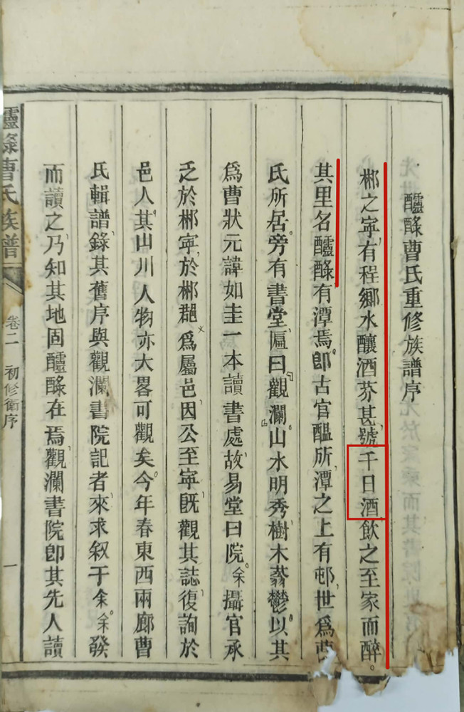 资兴《醽醁曹氏族谱》中关于“千日酒”的记载