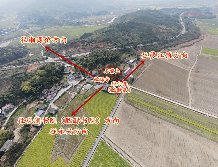 这一次我们决心穷根究底。依据《乾隆郴州志》《嘉庆郴州总志》《乾隆兴宁县志》《道光兴宁县志》《光绪兴宁县志》记载中提供的两条信息,即:一、“醽醁泉”就是“碓臼井”。二、醽醁泉在程乡湘源桥往永兴路旁,俗名碓臼井,上有醽醁寺旧址。又有曹氏醽醁书院。