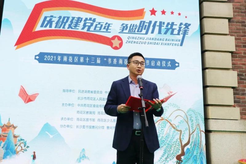 启动仪式上,播放“书香雨花”13周年专题纪录片及“阅读推广人”宣传VCR为活动启幕;雨花区委宣传部副部长别必雄代表领导致辞;雨花区人民政府二级调研员陈良红宣布本次活动正式启幕。