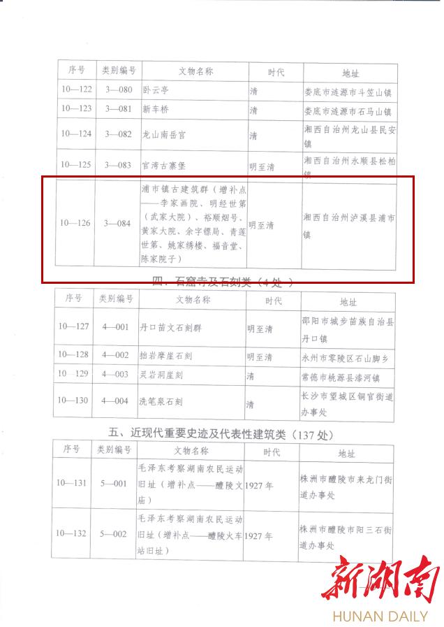 新湖南客户端3月15日讯(通讯员 李 平 杨 杰)近日,省人民政府公布第十批省级文物保护单位,湘西土家族苗族自治州泸溪县浦市镇下湾遗址(新石器时代))、泸溪县浦市镇古建筑群(增补点——李家画院、明经世第(武家大院)、裕顺烟号、黄家大院、余字镖局、青莲世第、姚家绣楼、福音堂、陈家院子)榜上有名。至此,泸溪已经拥有省级文物保护单位27处,州级文物保护单位3处,县级文物保护单位27处,其他未定级文物保护点200余处,成为湘西州的文物“大户”。