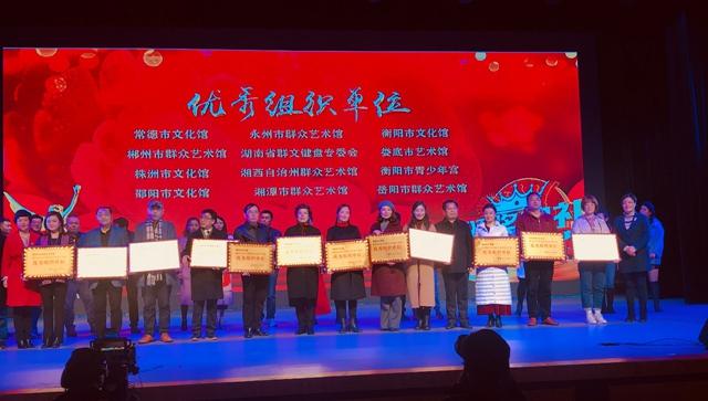 本次展演活动郴州市群众艺术馆获全省2018年度考级工作优秀组织单位称号。我馆4名优秀组织工作者和4名优秀教师获得表彰。