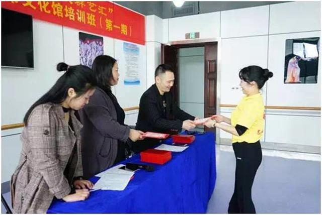 汇报表演结束后,市文化馆副馆长罗建勇、免费开放培训部主任蒋玲玲向学员们颁发结业证书。