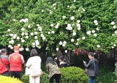 受前期持续阴雨低温天气影响,今年长沙紫凤公园的琼花大约推迟了半个月才开放。在紫凤公园里,记者看到洁白如玉的琼花,有的似玉盘,八朵一环,环环相连;有的似绣球,花中有花,风姿绰约,绿叶中,呈现出繁花簇拥白玉琢装的盛景。与往年不同的是,因花结缘,今年长沙首次与扬州瘦西湖联袂举办琼花艺术节,进行扬州琼花和草本绣球展览。据悉,扬州市瘦西湖风景区管理处赠送的20株木本琼花和50株草本绣球,树龄均为10年以上的佳品,已在紫凤公园移栽成功,目前已繁花满枝。