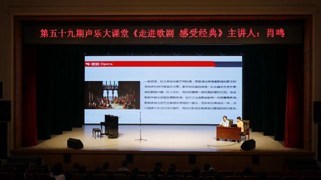 4月26日上午,正值声乐大课堂五周年之际,指挥家肖鸣教授莅临湖南省文化馆群星剧场,为湖南省文化馆主办、湖南省群文声乐专业委员会承办的第五十九期声乐大课堂《走进歌剧 感受经典》盛情开讲,带领多名歌剧演员为广大声乐爱好者呈现了一场精彩纷呈的讲座。台下听众全体起立为庆祝声乐大课堂五周岁生日唱响了《生日快乐》歌。