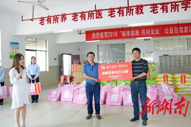 湖南日报·新湖南客户端5月10日讯(记者 张咪 通讯员 丁时伟)5月10日, 2019“福泽潇湘·共同见证”公益自驾游第三站走进了“瓷城”醴陵,40位爱心人士带着湖南福彩准备的8万元慰问金和价值2万元的慰问物资,走进该市社会福利中心,为孤寡老人带去温暖。