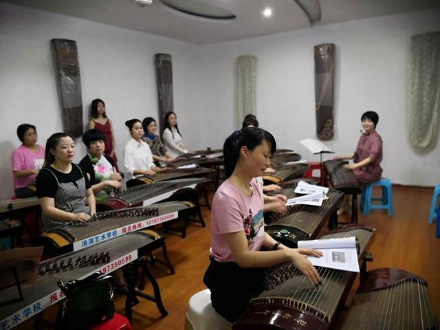 为满足广大市民的文化需求,市群艺馆中老年艺术大学决定在原有11门课程的基础上再增开一门古筝课程,5月15日上午9点在市群艺馆三楼古筝教室正式开课了,来自市内各行各业的15名喜爱古筝的市民整齐的坐在古筝前,聚精会神的聆听着全国古筝艺术水平考级考官、古筝高级教师、中国民族管弦乐学会会员,湖南省民族管弦乐学会古筝艺术委员会常务理事,郴州市民族管弦乐学会副会长,郴州市音乐家协会古筝学会执行会长、现任慧宇古筝校长刘泓娟给大家上的第一堂课。大家纷纷表示:“一定要珍惜这次群艺馆给大家的学习机会,感谢市群艺馆请来这么好的老师,好好听课,认真练习,不辜负领导和老师的期望。”
