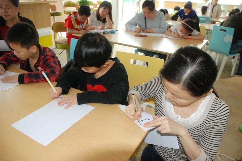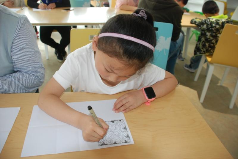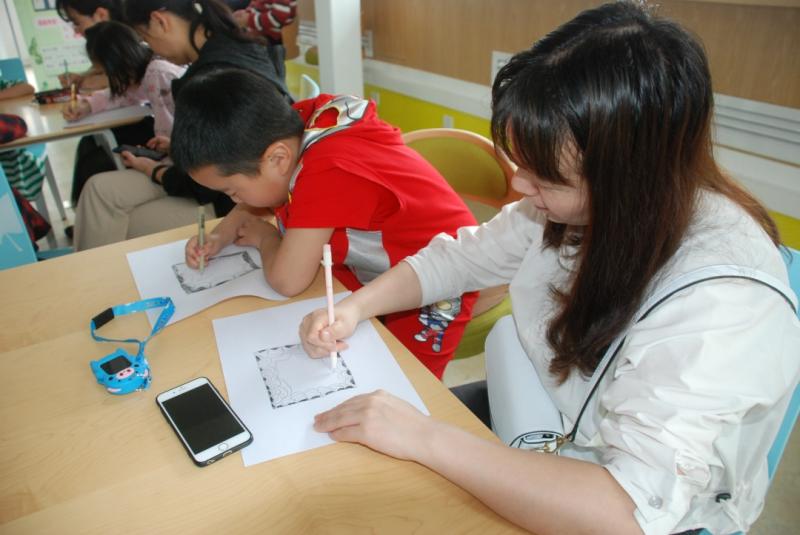 禅绕画是一种全新的绘画方式,它是在设定好的空间内用不断重复的笔划来创作出美丽的图案。无须深厚的绘画基础,也无须特定的场地,一支黑笔、一支铅笔、一张纸,就可以随时随地尽情禅绕。5月18日上午举办的周末10:30系列活动第17场禅绕书签,通过网络报名,吸引了20对亲子家庭参与其中。